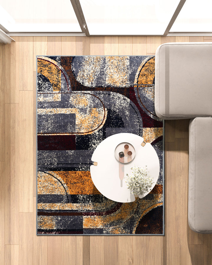 Enhance your interiors with the Silvora Multi Abstract Rug in Grey, Blue & Maroon, a modern masterpiece that combines bold color contrasts with an artistic abstract design. Featuring a dynamic pattern of overlapping geometric shapes and flowing curves, this rug creates an energetic, contemporary vibe, perfect for modern living spaces. Made from premium polyester, it is not only durable but also soft underfoot, offering a cozy feel with every step. Its vibrant color palette of deep maroon, blue, and grey ensures it stands out while seamlessly blending with various interior styles.