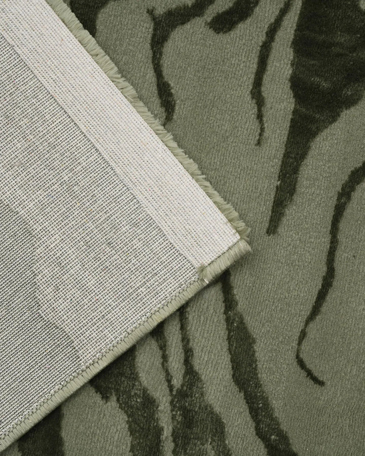 Bring a refreshing touch of elegance to your space with the Aura Carpet in Green Waves, a perfect balance of style, comfort, and durability. Expertly crafted from resilient shrinkable polyester fibers and supported by a soft cotton backing, this carpet offers a plush, cozy feel while standing up to everyday use.