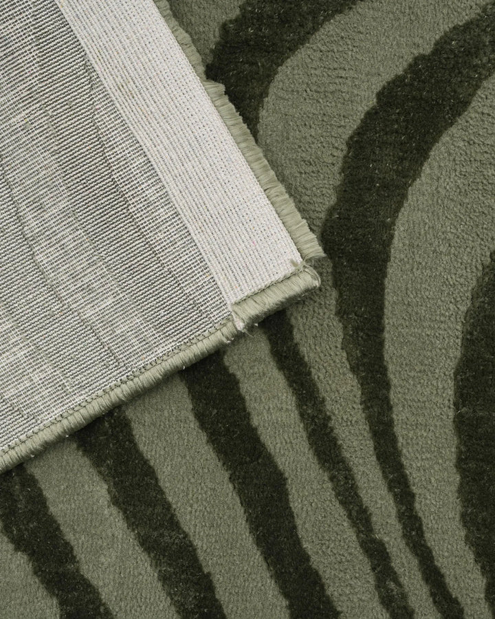 Refresh your interiors with the Aura Carpet in Green Zebra, a bold fusion of modern design and everyday comfort. Crafted from durable shrinkable polyester fibers and supported by a soft cotton backing, this carpet combines lasting strength with a plush, inviting texture underfoot.